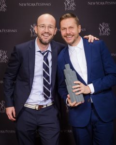George McQueen and Tom McQueen, Best of Show Winner, Clemenger BBDO Melbourne at the 2017 New York Festivals Advertising Awards Gala in New York City; 5/18/2017