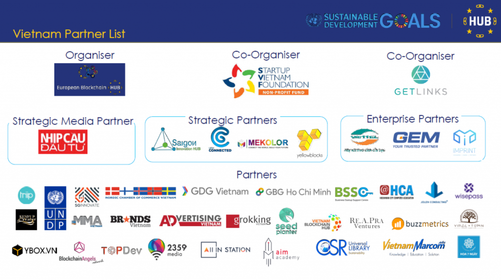Blockchain for SDGs Tour/Summit tại Việt Nam diễn ra từ 13:00 tới 18:00, ngày 24.11.2018 tại Nhà Hát Quân Đội. Sự kiện được tổ chức bởi European Blockchain HUB (EUBC HUB) và đồng tổ chức bởi Startup Vietnam Foundation (SVF) và Getlinks với mục tiêu làm sáng tỏ những ảnh hưởng của công nghệ blockchain lên thực tế xã hội và doanh nghiệp.