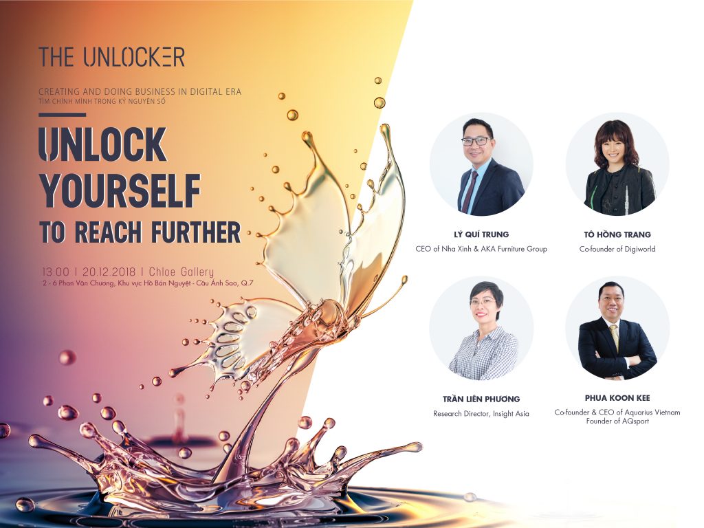 Hãy đến với chuỗi sự kiện của THE UNLOCKER với tên gọi “Creating And Doing Business In Digital Era – Tìm Chính Mình Trong Kỷ Nguyên Số” và buổi trò chuyện đầu tiên “Unlock Yourself to Reach Further” để gặp gỡ và lắng nghe những chia sẻ thiết thực và giá trị từ các diễn giả uy tín gồm: