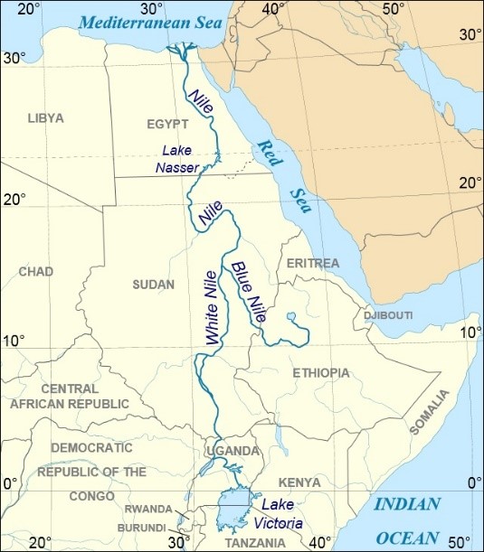Bản đồ sông Nile chảy qua 11 quốc gia