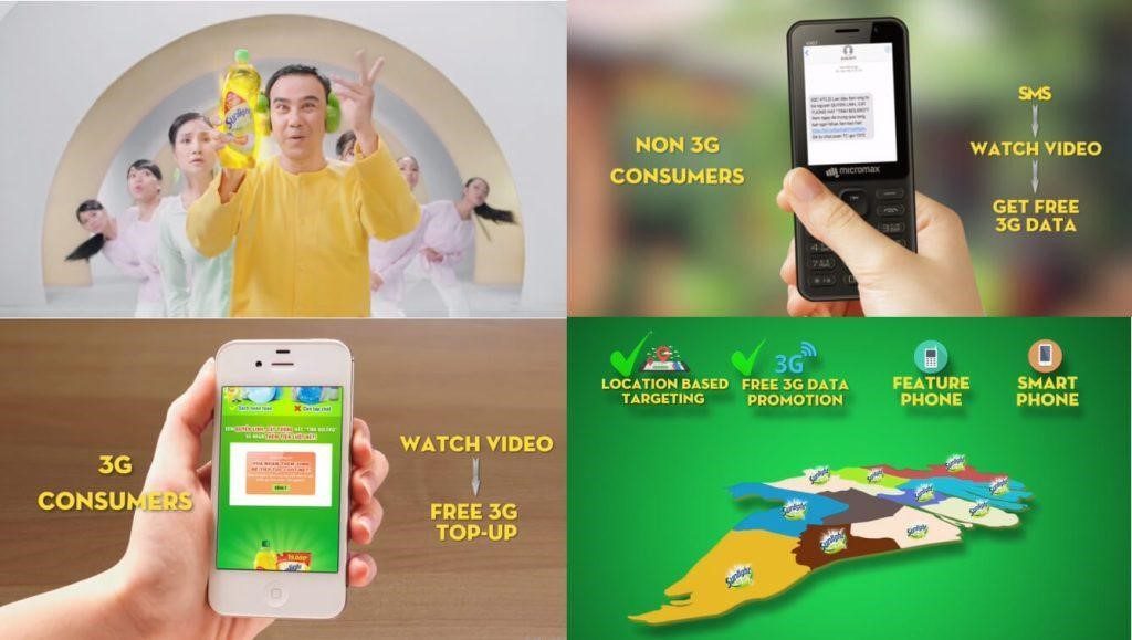 Với insight: nhận thấy phần lớn các bà nội trợ ở ĐBSCL thường dùng 3G để xem các nội dung online, và di động chính là thiết bị tiêu khiển chủ yếu của chị em phụ nữ khi rảnh rỗi, nhãn hàng đã tạo ra 1 video ca nhạc thú vị với sự góp mặt của MC Quyền Linh và Cát Tường, sau đó xác định khách hàng mục tiêu qua dữ liệu thu thập từ các trạm phát sóng. Từ đó, nhãn hàng đã tiếp cận thành công nhiều khách hàng tiềm năng, tặng dung lượng 3G miễn phí khi họ xem video của brand.