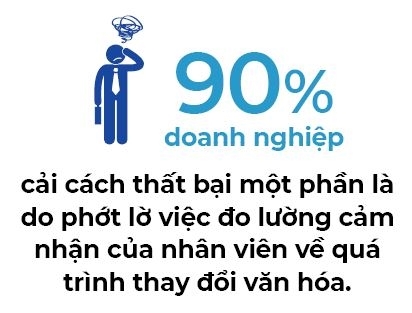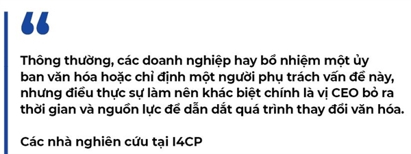 Cần lưu ý, vai trò nhạc trưởng cho công cuộc thay đổi văn hóa phải là CEO. Trong gần 80% doanh nghiệp thành công, CEO chính là gương mặt đi đầu. Dù là tại các cuộc họp với nhà đầu tư, với nhân viên, gặp gỡ khách hàng hay viếng thăm các cơ sở sản xuất, trả lời giới truyền thông, các CEO đều tận dụng mọi cơ hội để cho thấy nỗ lực thay đổi văn hóa. Thông thường, doanh nghiệp hay chỉ định một người đứng ra phụ trách hoặc bổ nhiệm một ủy ban văn hóa, nhưng điều thực sự làm nên khác biệt chính là vị CEO bỏ ra công sức để dẫn dắt quá trình thay đổi văn hóa.