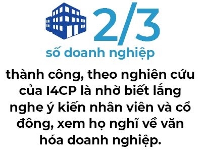 Thứ 2 là lắng nghe nhân viên. Các nhà lãnh đạo cấp cao thường cho rằng họ hiểu rõ văn hóa của doanh nghiệp mình. Nhưng thường là họ sai. 2/3 các doanh nghiệp thành công trong nghiên cứu của I4CP đã bắt đầu thu thập dữ liệu từ nhân viên và cổ đông để tìm hiểu họ nghĩ gì về văn hóa doanh nghiệp hiện tại và họ mong muốn văn hóa mới như thế nào. Bằng cách tham khảo ý kiến của nhân viên và đặc biệt quan tâm đến cảm nhận chung, các nhà lãnh đạo cũng có thể theo dõi và đo lường xem liệu nền văn hóa mới có đang cắm rễ tốt ở doanh nghiệp.